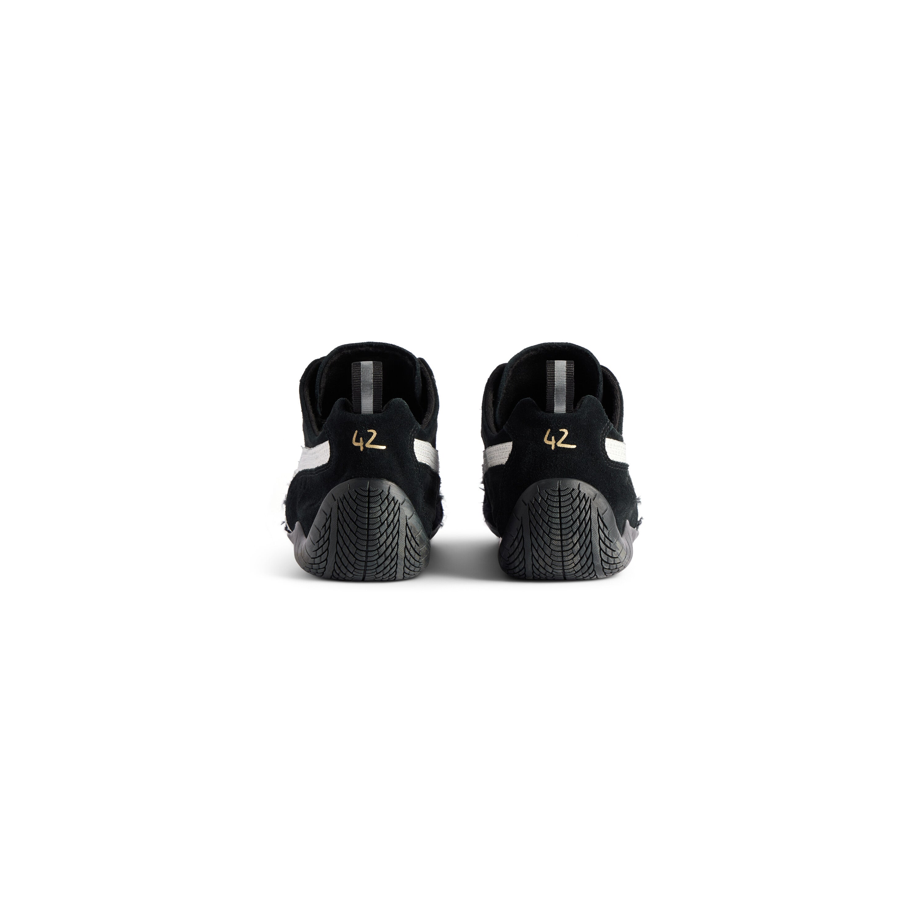 The Balenciaga Speedcat Suede Sneaker in Black/White captures the essence of sleek performance and modern minimalism. Inspired by retro motorsport footwear, this silhouette fuses racing precision with Balenciaga’s avant-garde aesthetic, resulting in a sneaker that feels effortlessly refined and undeniably bold.