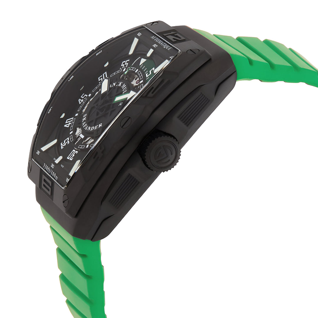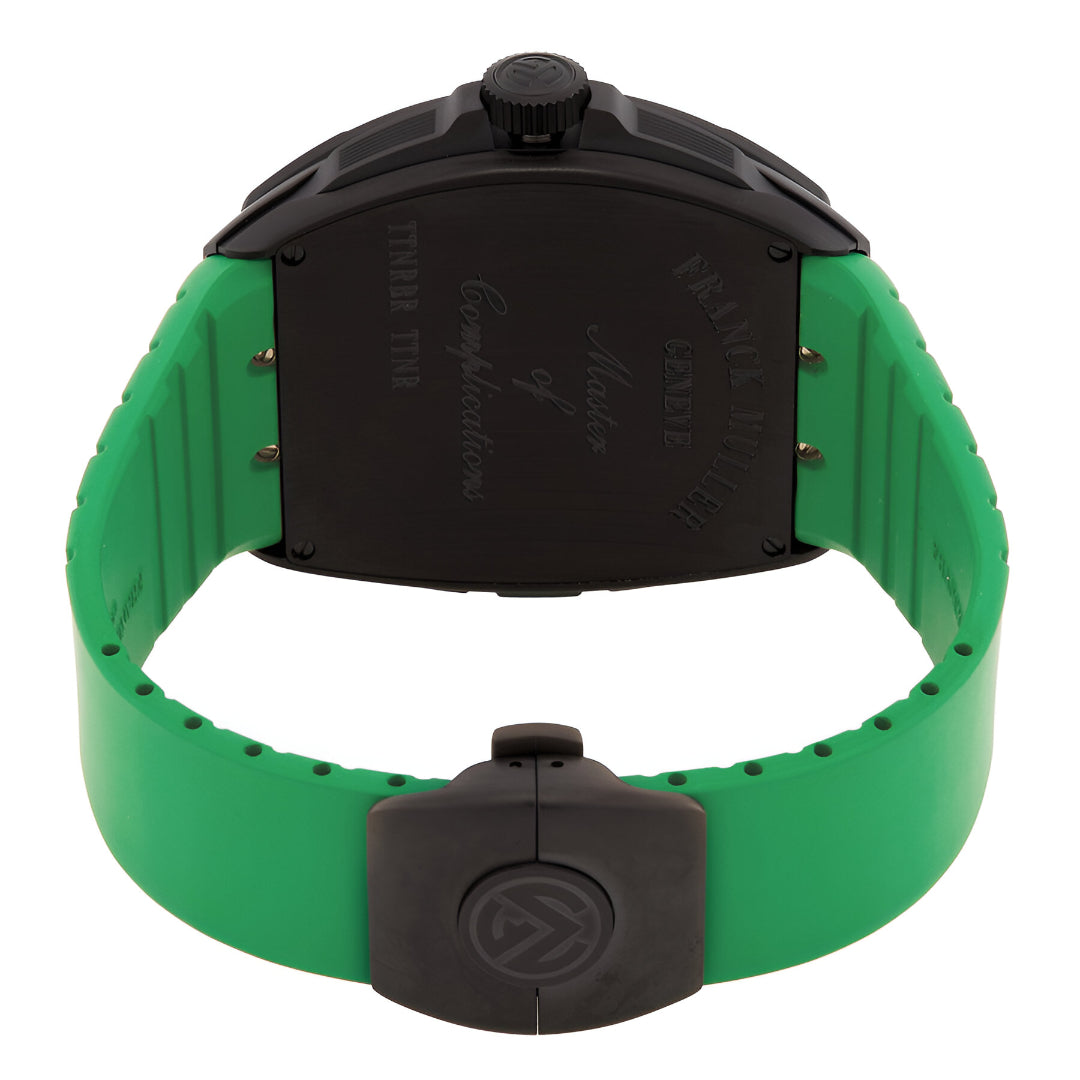 The Franck Muller Skafander Automatic Black Dial Men’s Watch is a bold, high-performance timepiece built for those who value technical precision and modern sport-luxury design. Featuring a robust titanium case, a rugged green rubber strap, and a striking black dial, this watch blends advanced engineering with Franck Muller’s unmistakable aesthetic. Its Swiss-made automatic movement and dive-inspired features make it a powerful companion for both daily wear and adventurous pursuits.