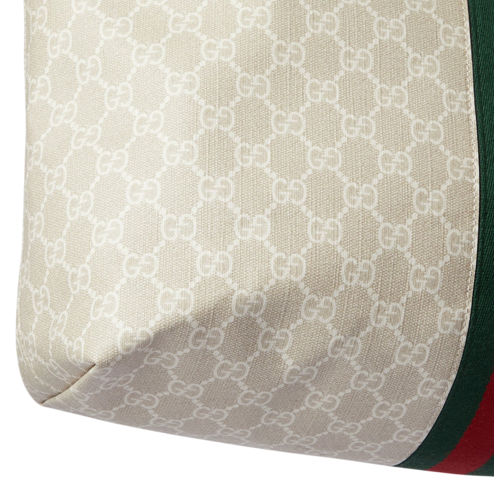 Accented with oatmeal leather trim and the iconic green and red Web stripe, this tote merges heritage craftsmanship with contemporary allure. The Double G emblem and gold-toned hardware lend a timeless touch, while the spacious interior makes it an ideal companion for both casual days and refined escapes.