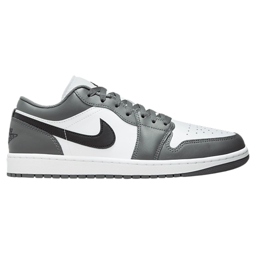 Crafted from premium leather, the soft grey upper is complemented by crisp white panels and bold black accents, creating a balanced and timeless look. The low-top profile ensures a relaxed, comfortable fit, while the cushioned midsole and durable rubber outsole provide reliable comfort and traction. Signature details — including the Swoosh logo, embroidered Jumpman, and Wings insignia — highlight the shoe’s unmistakable Jordan heritage.