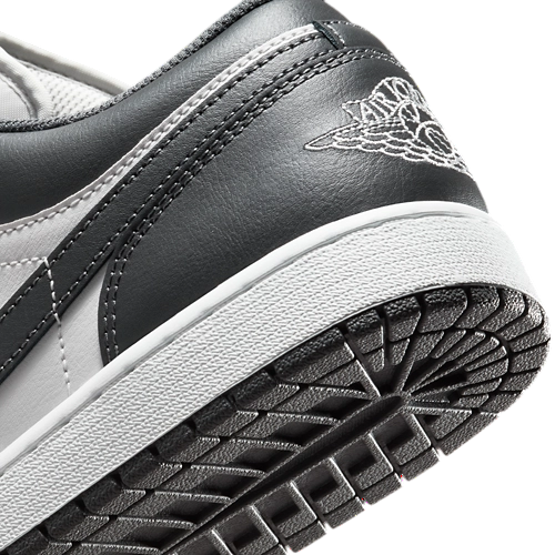 Crafted from premium leather, the Summit White base is complemented by smooth Iron Grey overlays, creating a clean, tonal contrast that enhances its refined appeal. The low-top construction provides a relaxed fit and casual comfort, while the cushioned midsole and durable rubber outsole deliver lasting support and traction. Signature Jordan details — the side Swoosh, Jumpman logo, and Wings insignia — highlight its unmistakable legacy.