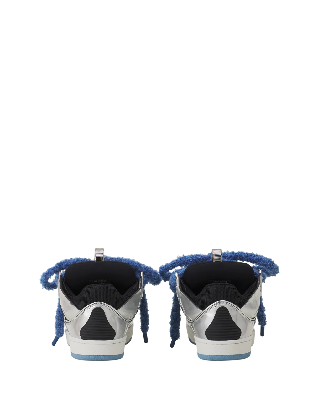 The Lanvin Curb Sneaker in Silver fuses futuristic edge with refined craftsmanship. Its metallic finish makes it a perfect statement piece for evening wear, street style, or any look that calls for fearless sophistication.
