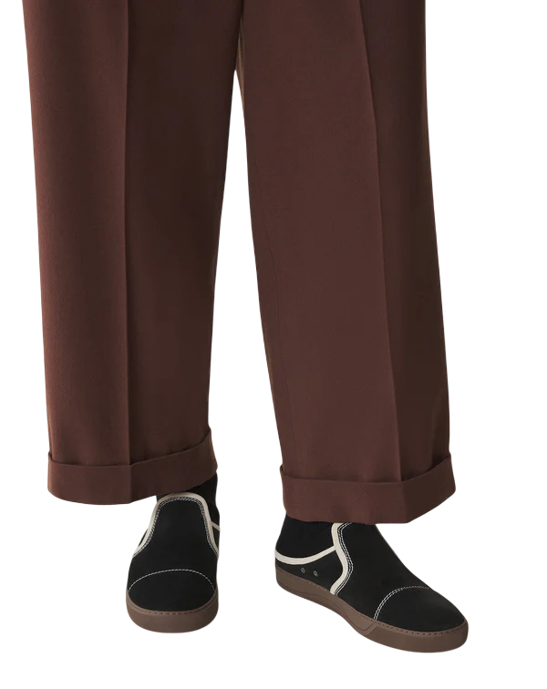 The Lanvin DBB1 Suede Mule Sneaker in Noir and Blanc Cassé reimagines contemporary street style with effortless Parisian refinement. This slip-on design blends the iconic DBB1 silhouette with a relaxed mule profile, delivering a chic, versatile option for modern wardrobes.