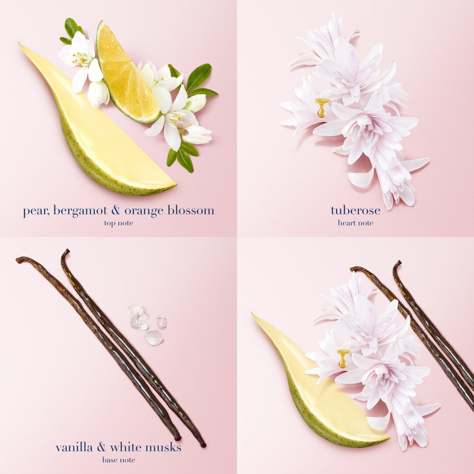 The fragrance opens with a refreshing, velvety burst of pear and bergamot, creating a juicy, energizing first impression. As it unfolds, a radiant floral heart of tuberose and orange blossom adds depth, elegance, and sensuality. These iconic white florals feel softer, creamier, and more playful in this Nectar interpretation. The base reveals a warm, comforting blend of vanilla, musk, and soft woods, leaving a lingering trail that is sweet, addictive, and effortlessly sophisticated.