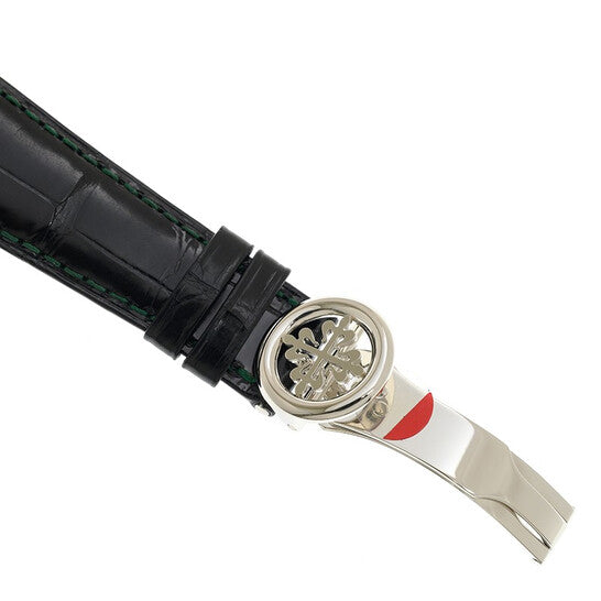 The Patek Philippe Grand Complications Perpetual Chronograph 5270P-014 represents the pinnacle of haute horlogerie, combining centuries of Swiss watchmaking mastery with extraordinary mechanical complexity and refined elegance. Crafted from luxurious platinum and paired with a hand-stitched black alligator leather strap, this exceptional timepiece showcases Patek Philippe’s legendary commitment to precision, artistry, and innovation. Its striking green dial, adorned with meticulously arranged complications, delivers both visual distinction and functional excellence. Powered by the hand-wound Calibre CHR 29-535 PS Q, this watch is a true collector’s masterpiece designed for connoisseurs who demand nothing short of perfection.